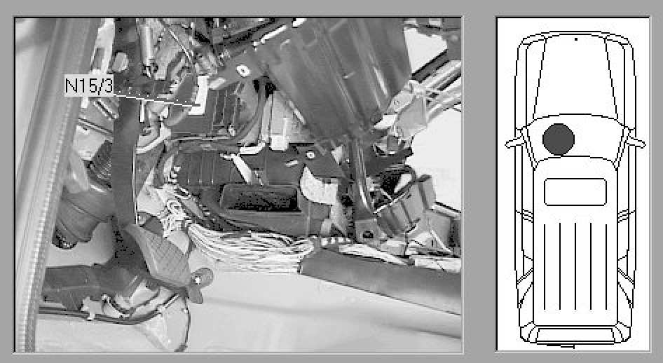 Passenger compartment, driver's footwell, upper right, on left- side of heater box.