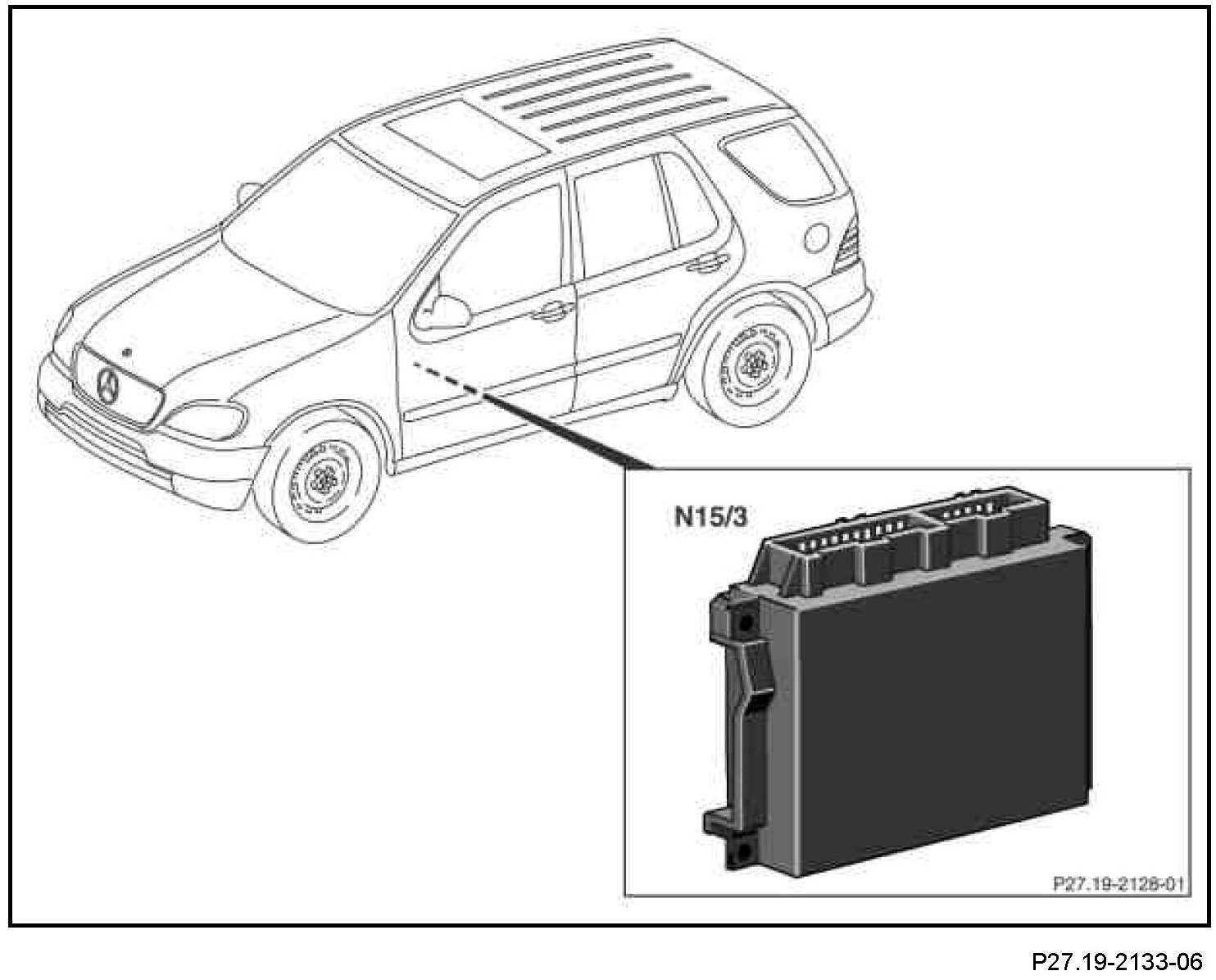 The ETC control module (N15/3) is installed in the left footwell, on the heater/air conditioning housing.