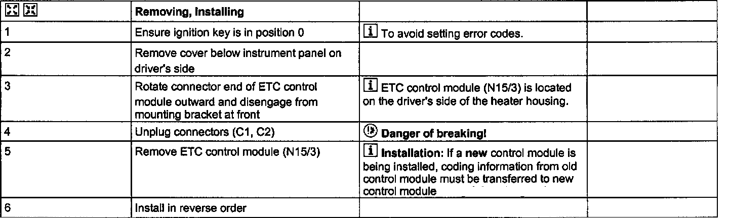 Removing, Installing Electronic Transmission Control (ETC) Control Module