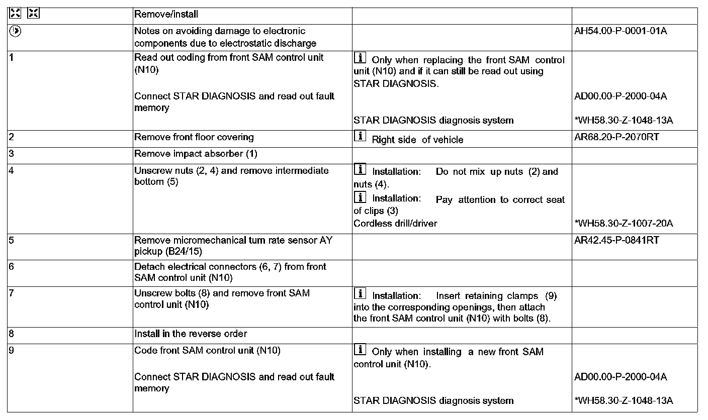 AR54.21-P-1254RT Remove/Install Front SAM Control Unit