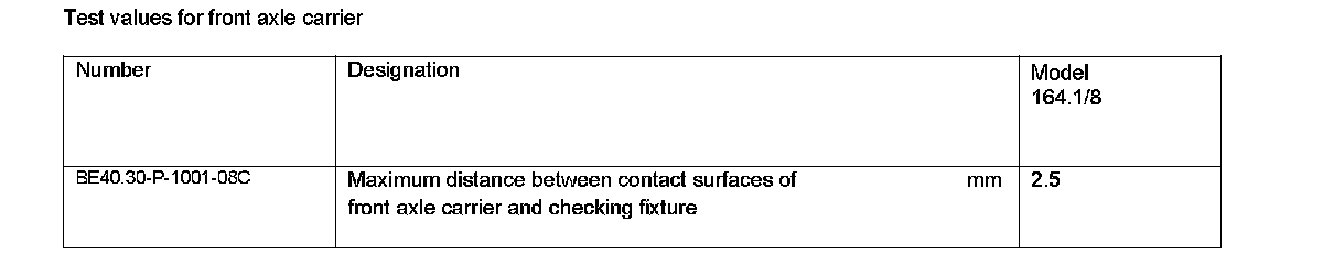 Test values for front axle carrier: