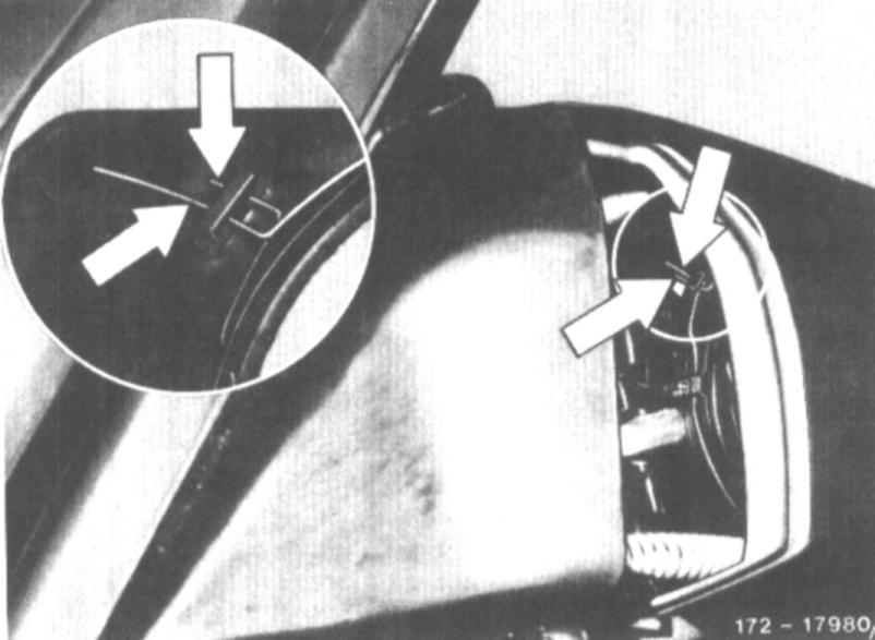 Removal and replacement of outside rear view mirrorNote: If the outside rear view mirror is unintentionally changing its position, tighten screw on adjusting mechanism as required.
