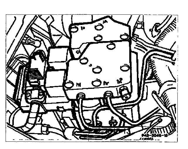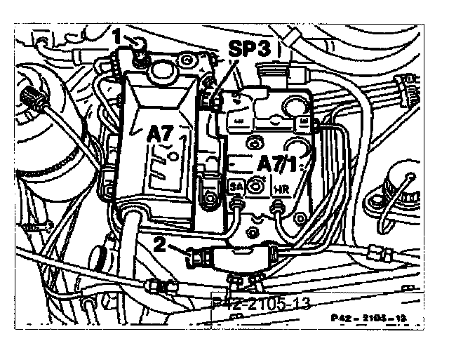 If the bleeding operation with bleed screw SP3 "takes too long with the engine running, the charging pump switches off (no more brake fluid exiting at bleed hose, indicator for "ASR "illuminates). In this case shut off engine and start again. Continue bleeding operation.