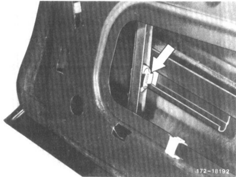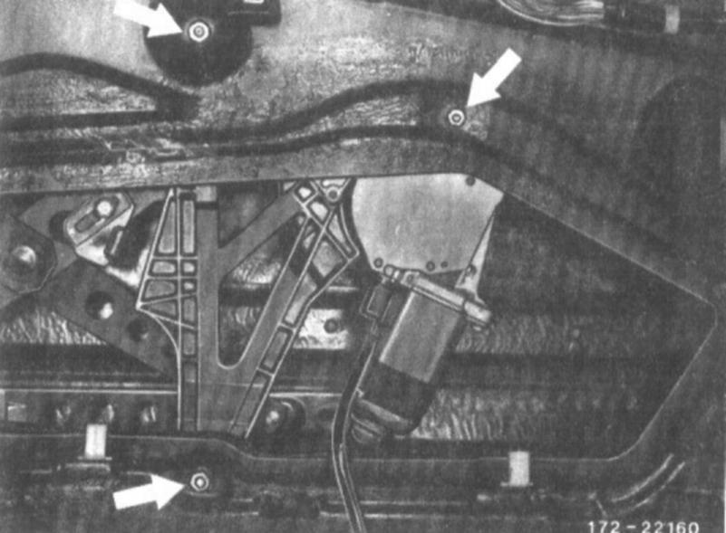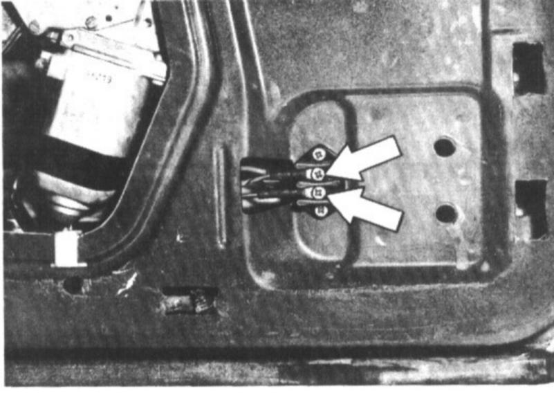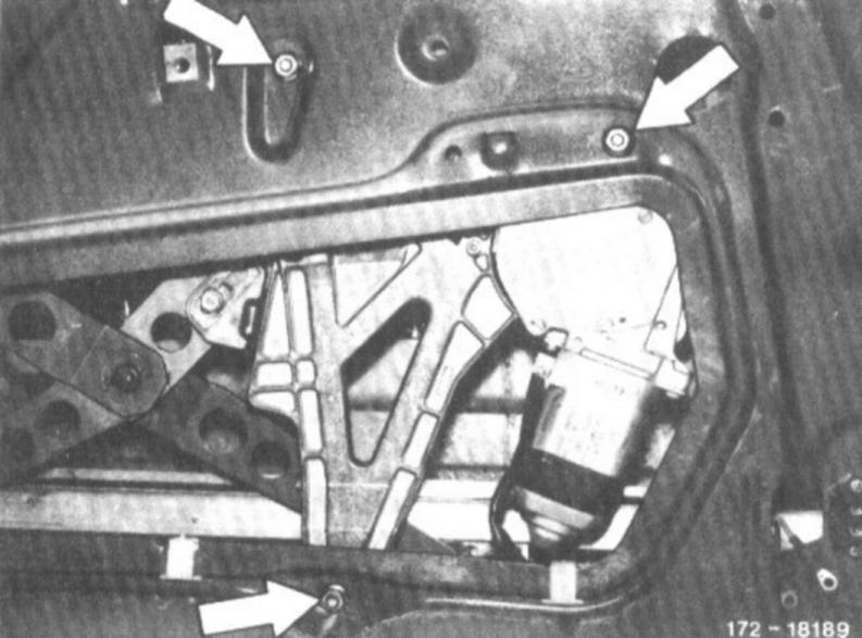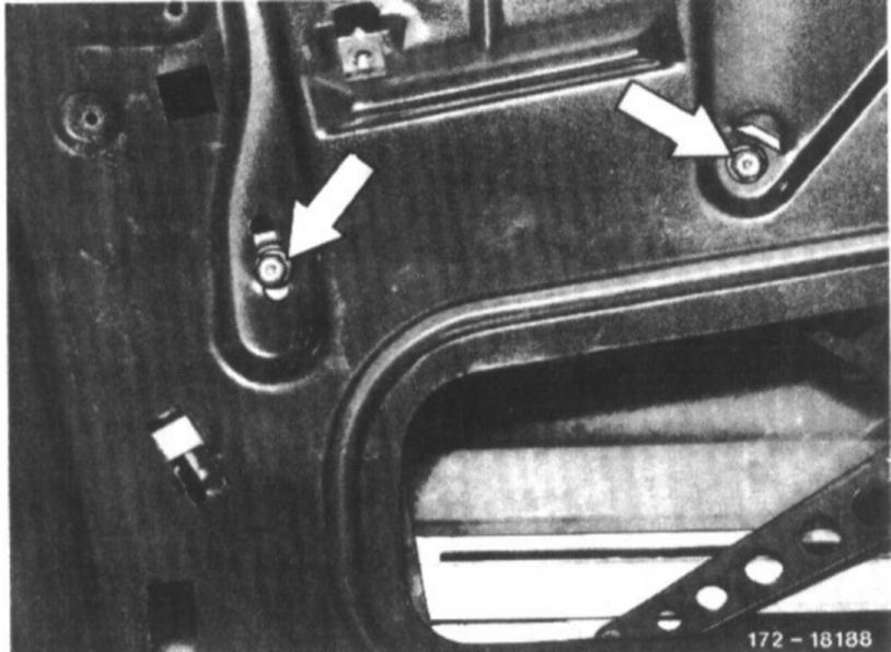 9. Unscrew nuts on window opener and remove fastening bolts from inside door panel.