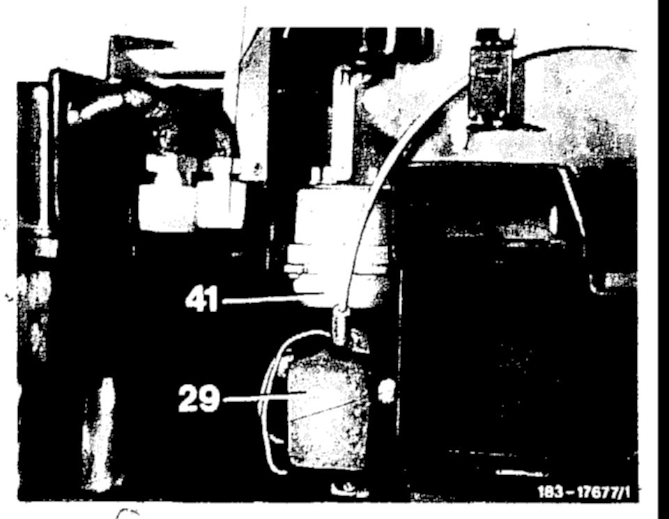 4. Carefully pull ETR-switch (29) toward the rear and then pull capillary of ETR-switch out of guide tube in air conditioner housing, making sure that a counter-hold is applied to guide tube.