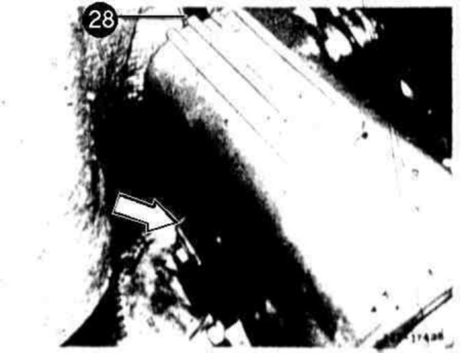 2 Unscrew holder (arrow) for oil filler pipe (28) on cylinder lead.