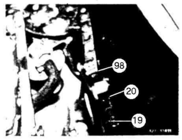 20 Remove plug for starter lockout switch (8).