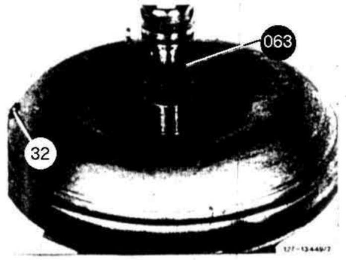 36 Flush torque converter by adding 1 liter of kerosene. Insert flushing mandrel 116 589 00 15 00 (063) and drive by means of a portable drill at low speed for approx. 2 minutes. Then drain kerosene via drain plug (2). Repeat flushing procedure 2 - 4 times until kerosene flows out clean.