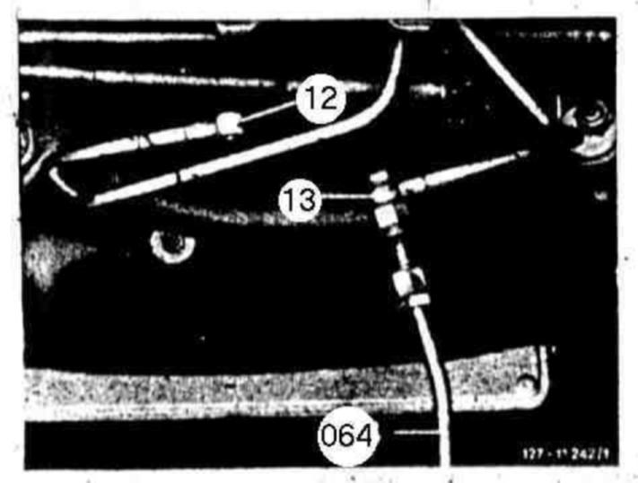 37 Screw oil cooler with oil cooler lines (12) and (13) to syringe (064) and flush with cleaning compound. Then blow out well. Hand pump for removing oil 112 589 00 12 00.