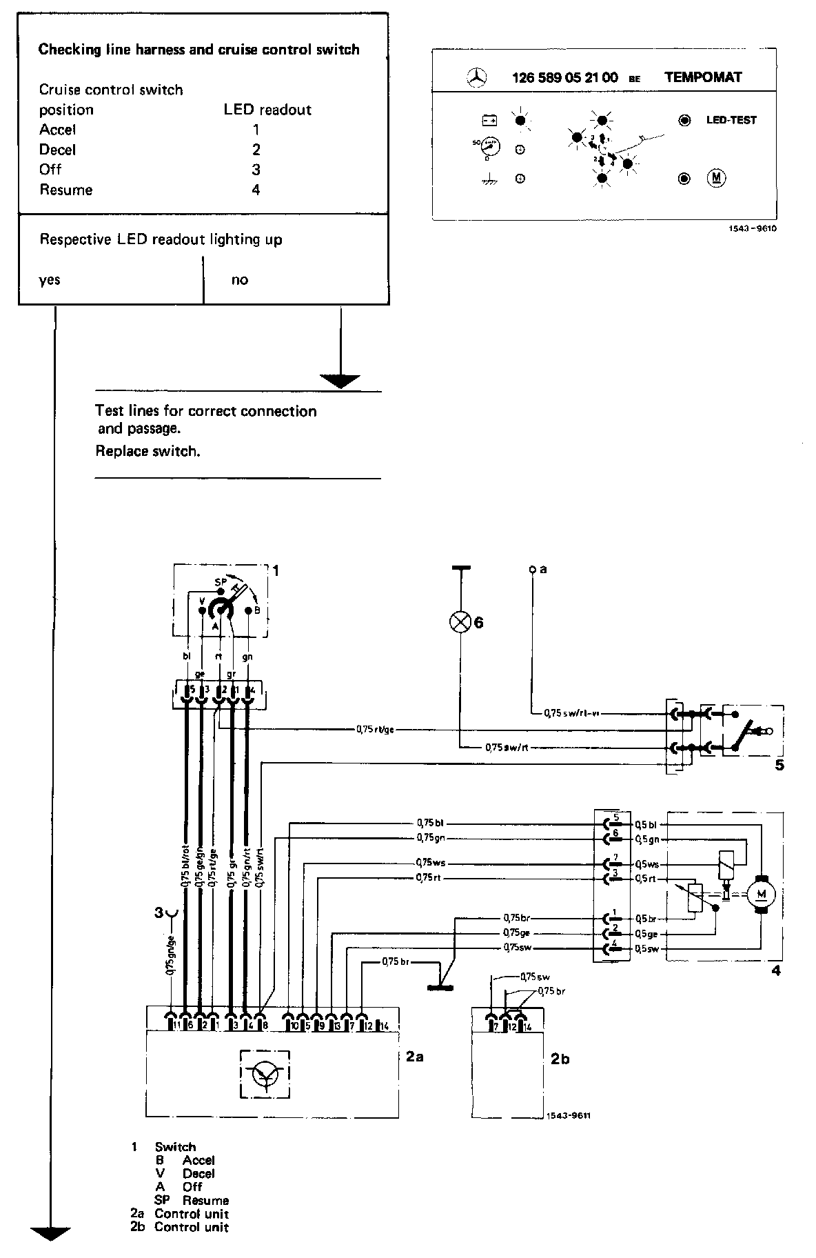 Test cruise control/Tempomat with adapter only. If other testing and measuring instruments are used, the cruise control/Tempomat may be destroyed. During this test, the cruise control/Tempomat system is tested with the exception of the control unit.