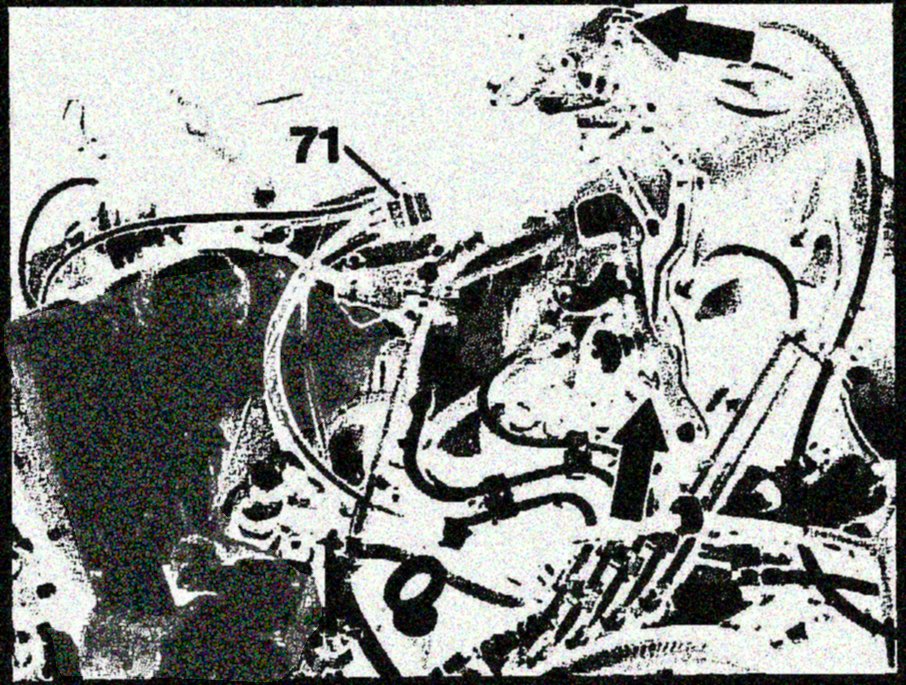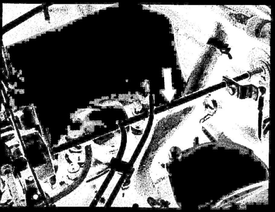On models 123 with automatic transmission 722.303 (W 4 A 040) and 126.120, pull off central plug for vacuum lines (71) or vacuum lines. Disconnect Bowden wire, compress black plastic clip (arrow) and pull Bowden wire out of holder in rearward direction.