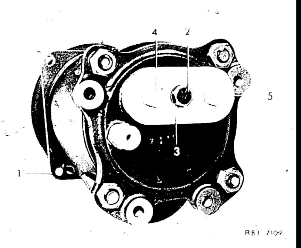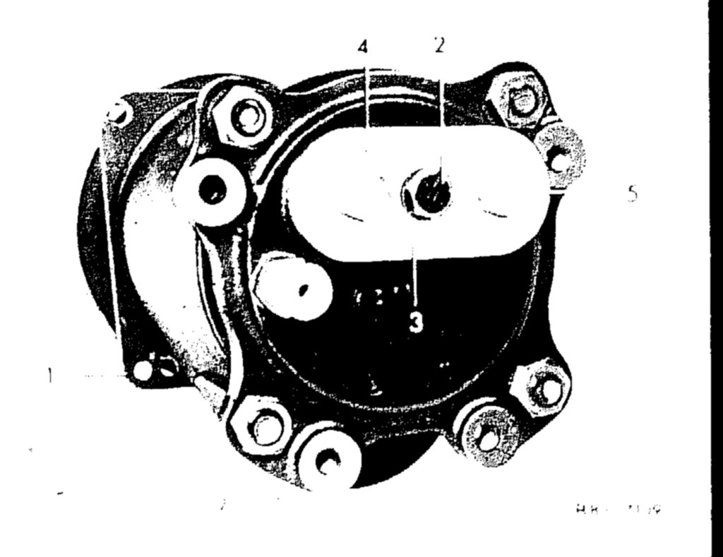 2. Screw pressure test plate (3) with available hex. screw and spring washer (2) to refrigerant compressor (1).