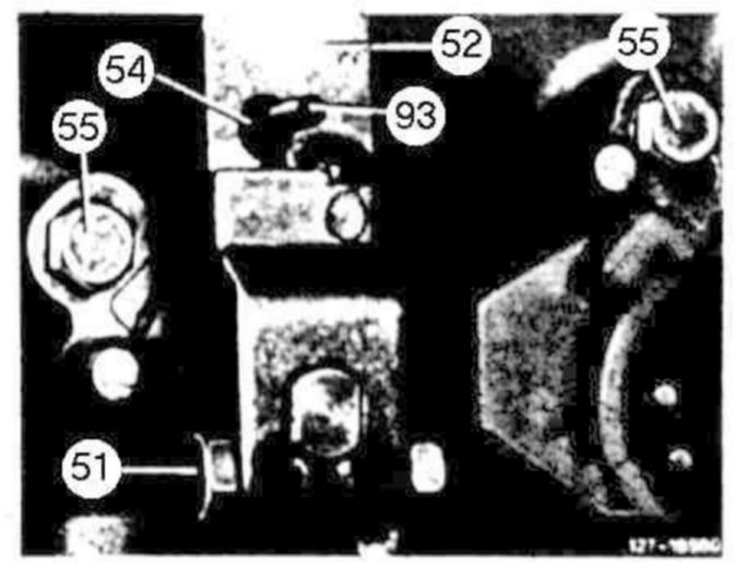 6 Position starter lockout switch (53), screw-in both fastening screws (55) but do not yet tighten.