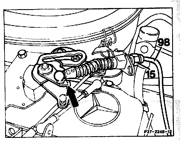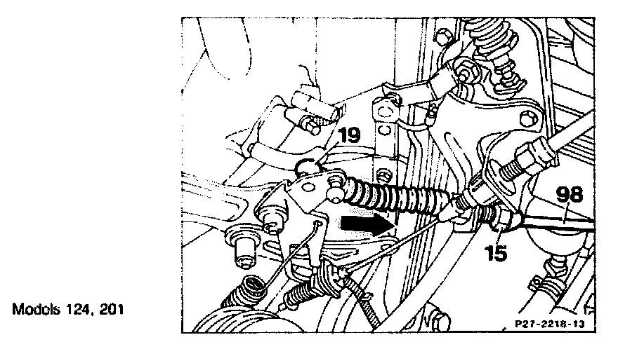 1. Press off ball socket (19). Separate idle travel rod (8) as far as the stop, pull control pressure cable forward until a slight resistance is felt. In this position, hold ball socket above the ball head and attach free to tension; it may be necessary to re-set idle travel rod (8).