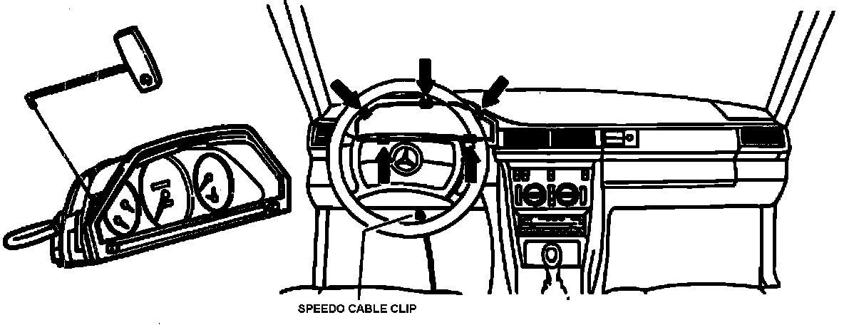 7. Carefully slide special tool No. 126 589 03 33 00 between the dash padding and the instrument cluster and rotate 90°.