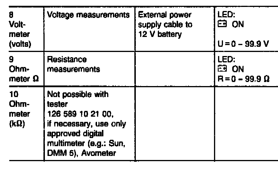 * Further applications using the tester as a voltmeter or ohmmeter (in the context of the airbag test only)
