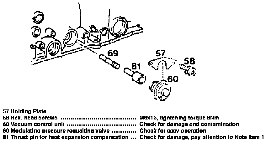 NOTE: The vacuum control unit version B has been installed up to February 1981. The vacuum control unit with thrust pin for heat expansion compensation version A is installed since February 1981. In the event of repairs, install version A. Test modulating pressure and adjust.