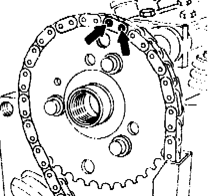 10. Turn crankshaft long enough for it to be possible to connect the ends of the new timing chain to the rivet link.