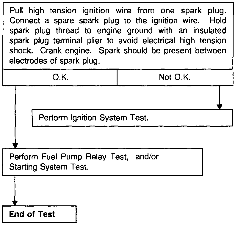 Caution: Before performing this test, make sure that there is no fuel leak and all spark plugs and injection valves must be installed. Use a spare spark plug for this test.