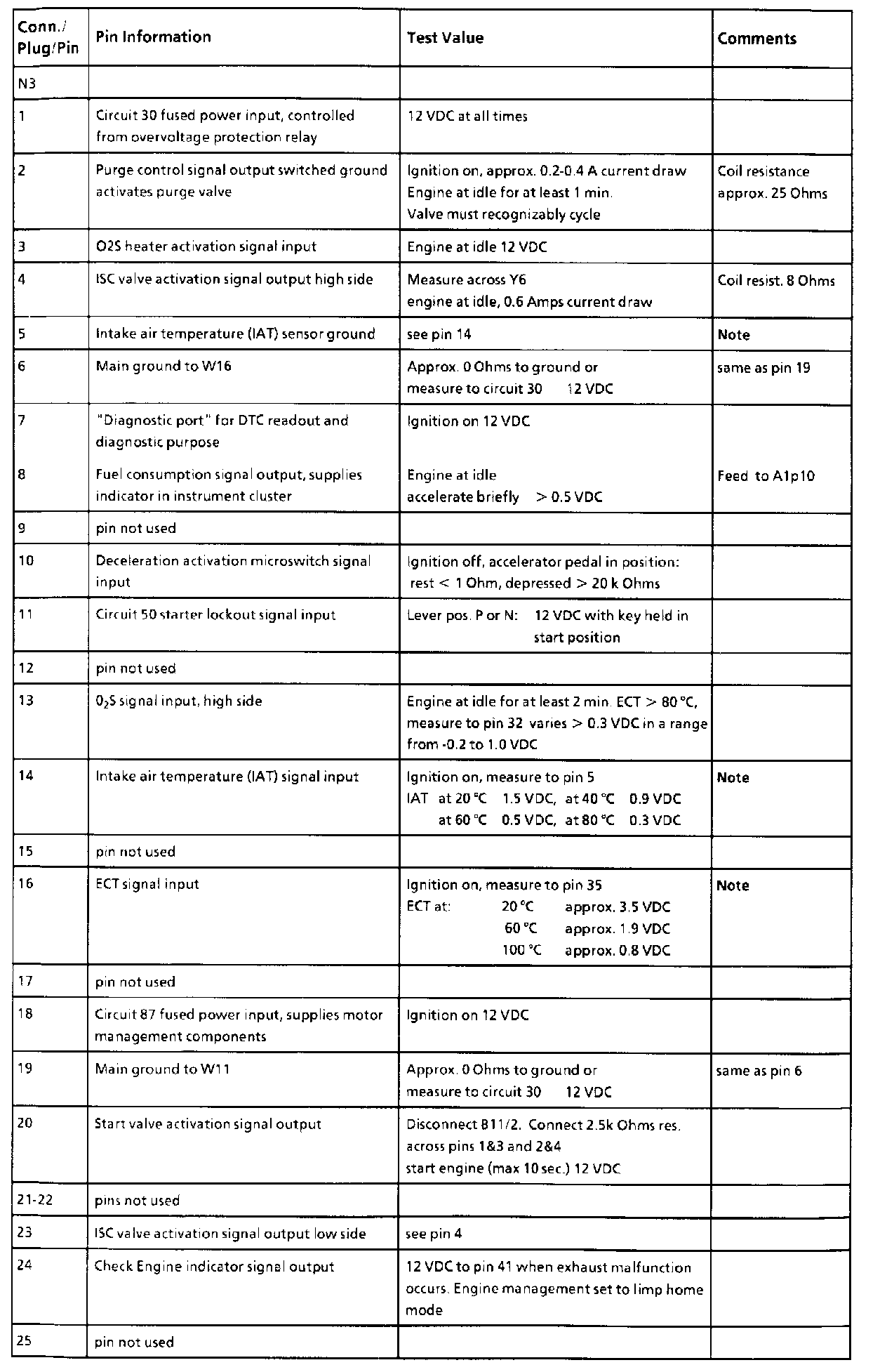 All values measure to ground unless otherwise noted