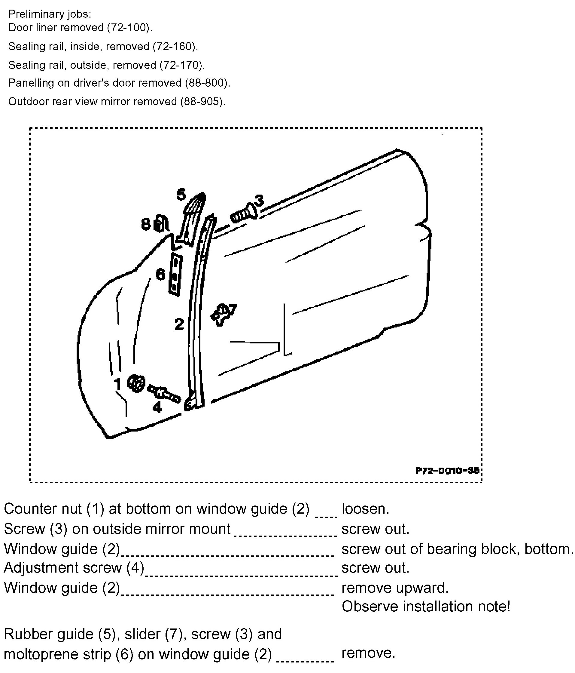 72-200 Removal And Installation Of Window Guide, Front