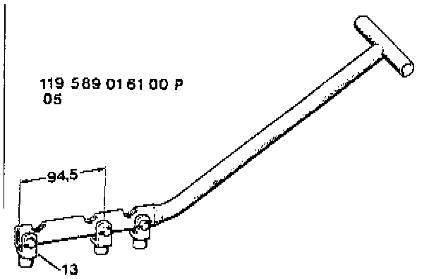 The previous lever-type valve spring compressor, part no. 601 589 02 61 00 can be provided with an additional forked head (13, Figure 1). Thus the spring compressor can also be used for engines 104 and 119. To attach the forked head, an 8 mm bore must be drilled in the area between the existing forked heads (Figure 1).