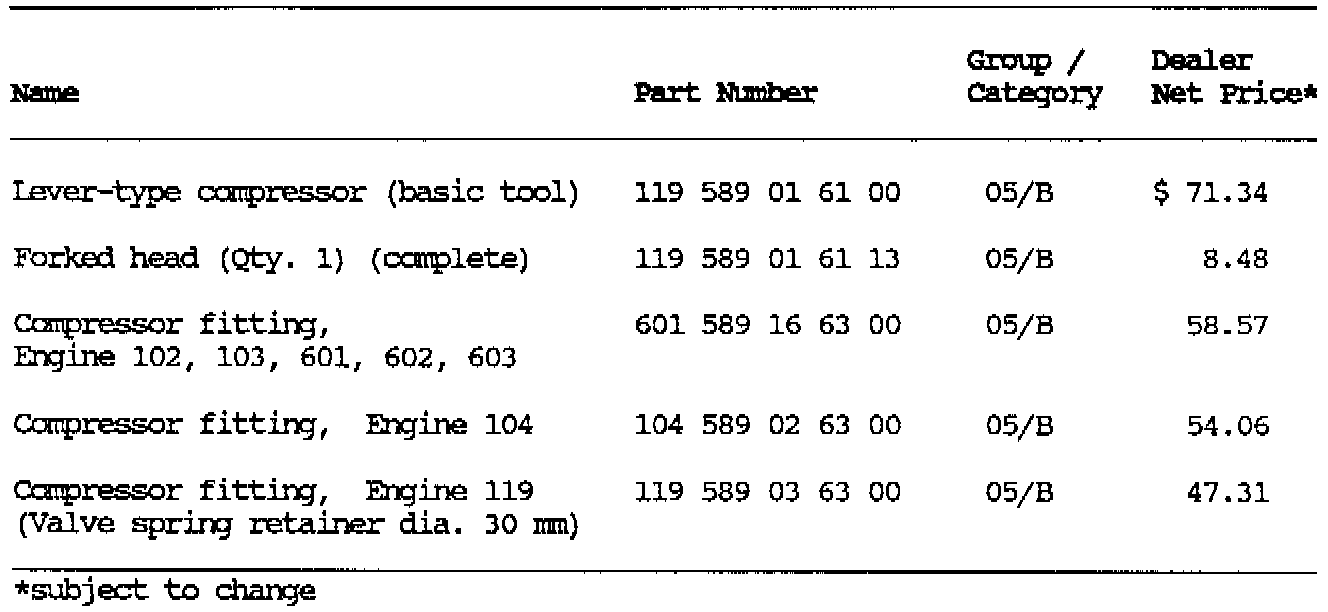 The part number of the modified lever-type valve spring compressor must then be changed to 119 589 01 61 00.