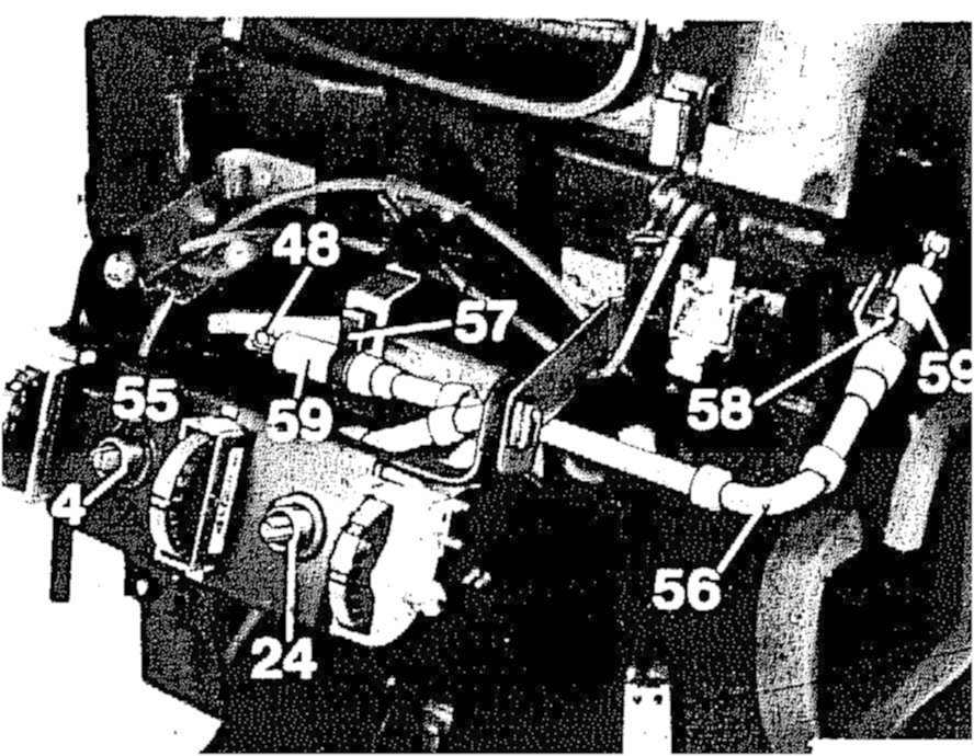 6 Unscrew retaining bracket (50) from heater unit and lift heat exchanger (51) upward out of heater unit.