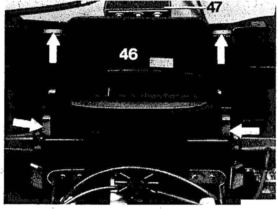 2 Remove clamps (see arrow) on cover (6) for air outlet center with a screwdriver and lift off cover (46) of heater unit.