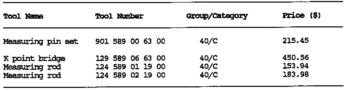 SPECIAL TOOL, VEHICLE MEASURING PIN SET 901 589 00 63 00 MODELS 124, 129, 201
