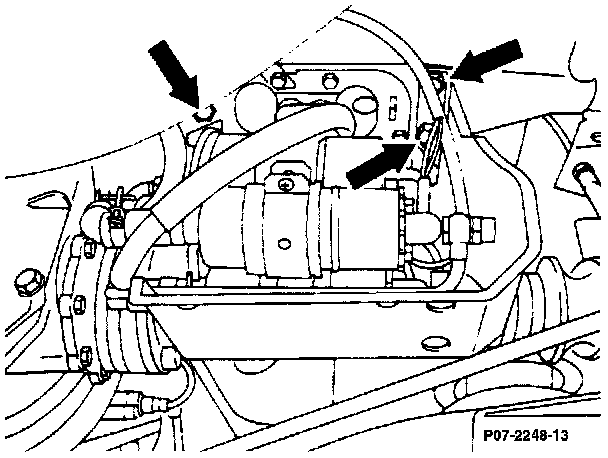 - Remove protective cover by removing mounting bolts (arrows).