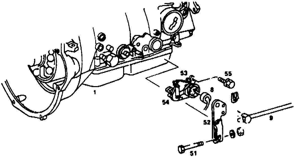 Remove after unscrewing hexagon bolt (51). When installing, ensure that driver (54) engages in range selector lever (item 4).