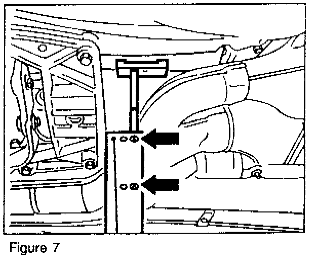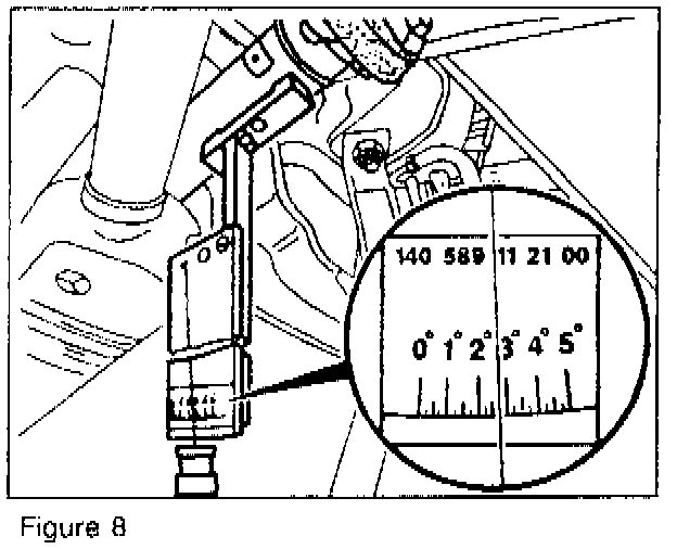 Attach protractor to the lower threaded bores (arrows. Figure 7) of fixture 1 part no. 140 589 30 63 00. Read absolute angle and note values.