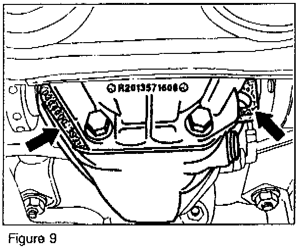 10. Using the appropriate tools, clean off any residual sealers, paint, surface corrosion, roughness etc from machined surfaces (arrows, Figure 9) of the rear axle center piece housing.