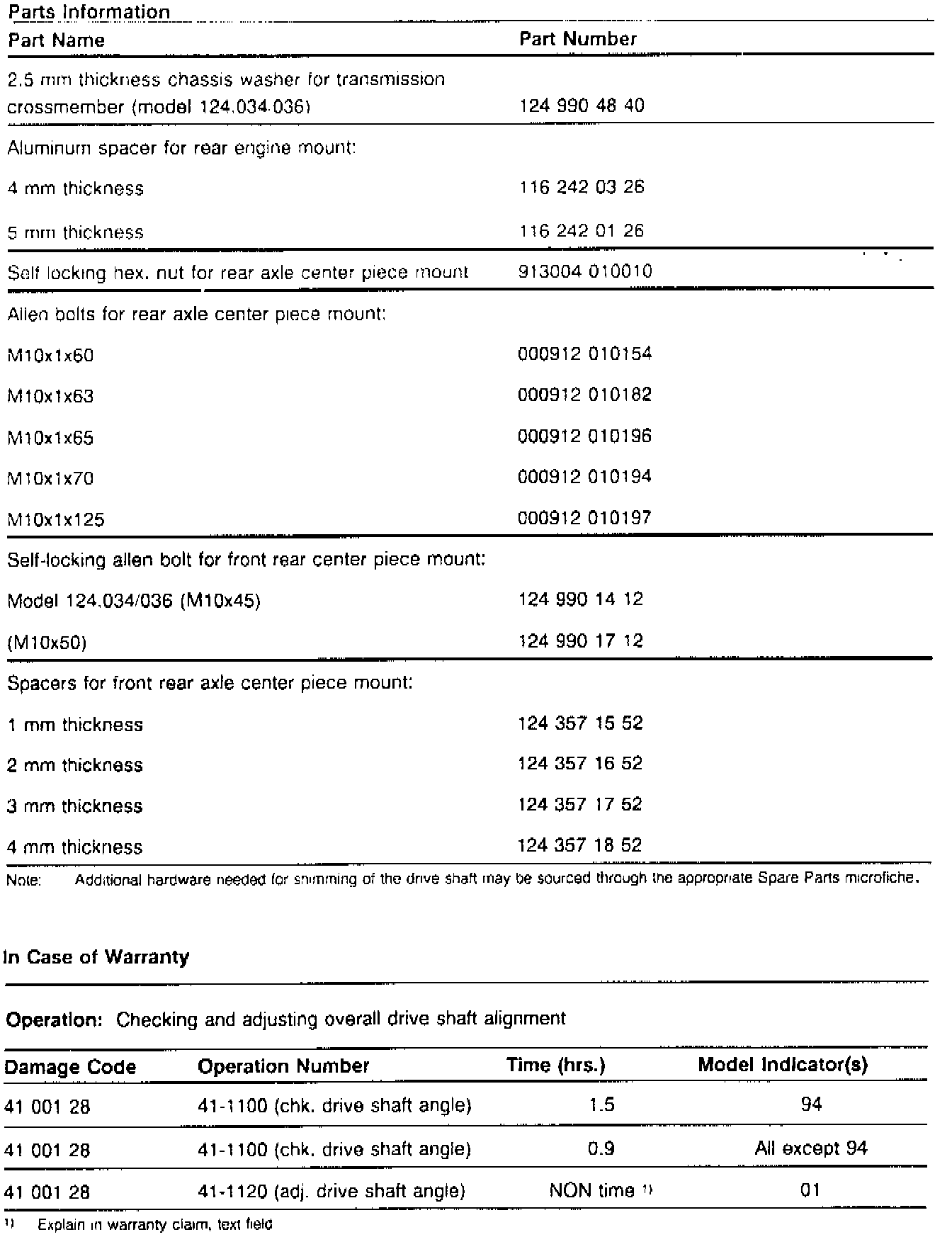 Careful review of S.I. 41/18 (April 1995), and a thorough test drive of the vehicle to verify any noise or vibration complaint are necessary, prior to checking and adjusting overall drive shaft alignment.