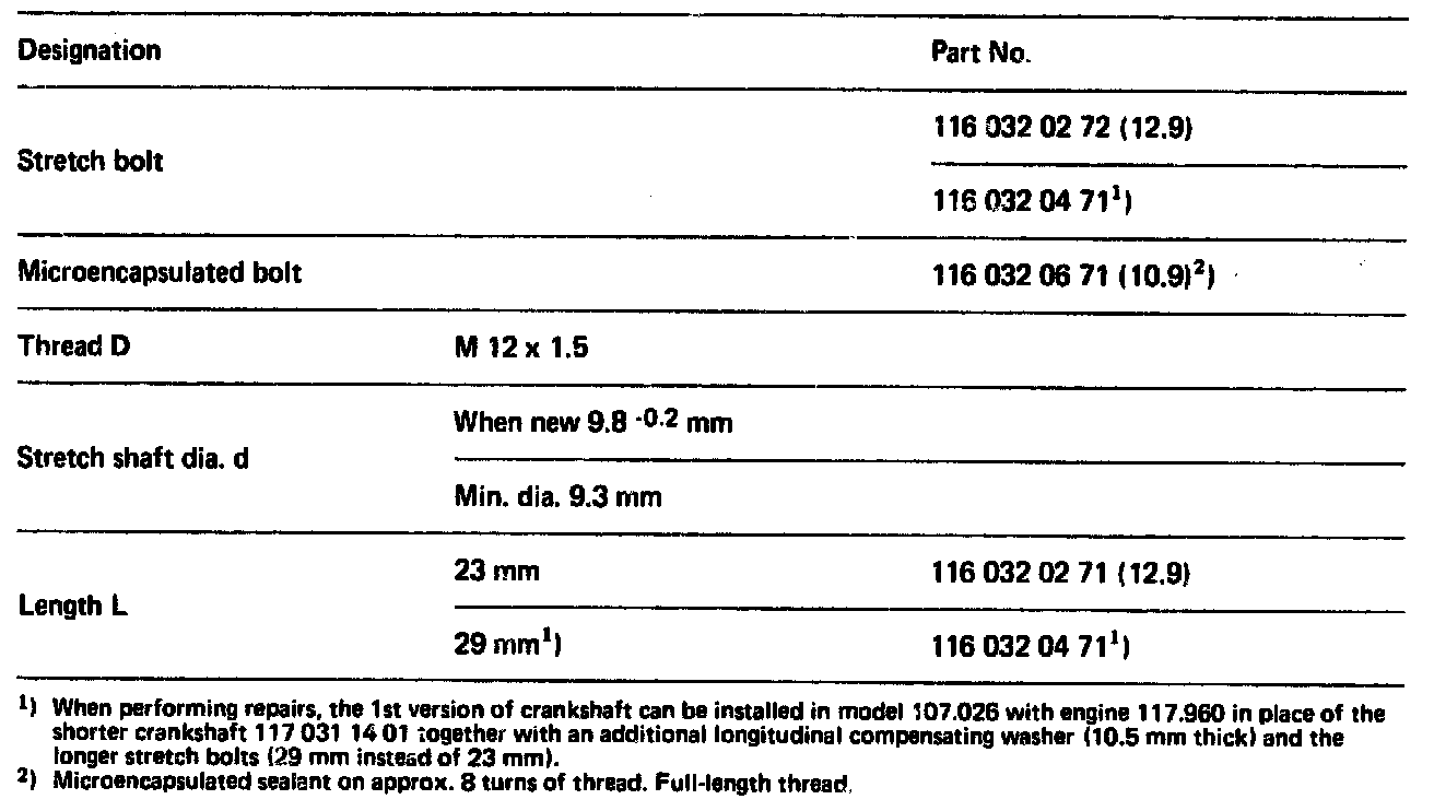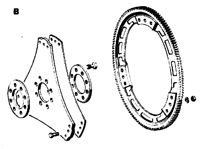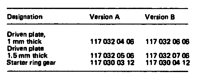 NOTE: Lighter driven plates and starter ring gears (version B) were installed in engines 116.962/963 and 117.962/963 during the period November 1982 to February 1983 and as of June 1983.