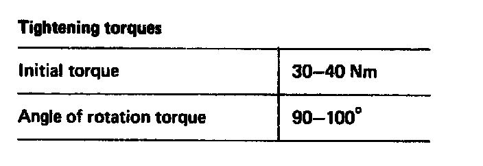 4 Screw in stretch bolts or microencapsulated bolts and tighten to an initial torque of 30 - 40 Nm and an angle of rotation of 90 - 100°.