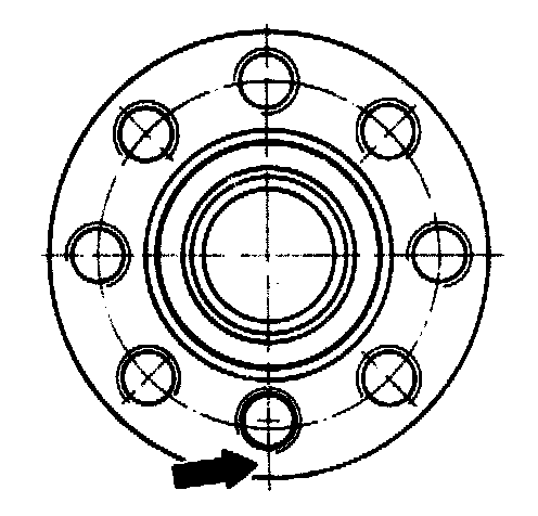 NOTE: One of the eight securing bolts is positioned off-centre in the pitch circle diameter (arrow). The driven plates therefore have to he installed in a certain position. The holes must be exactly aligned.