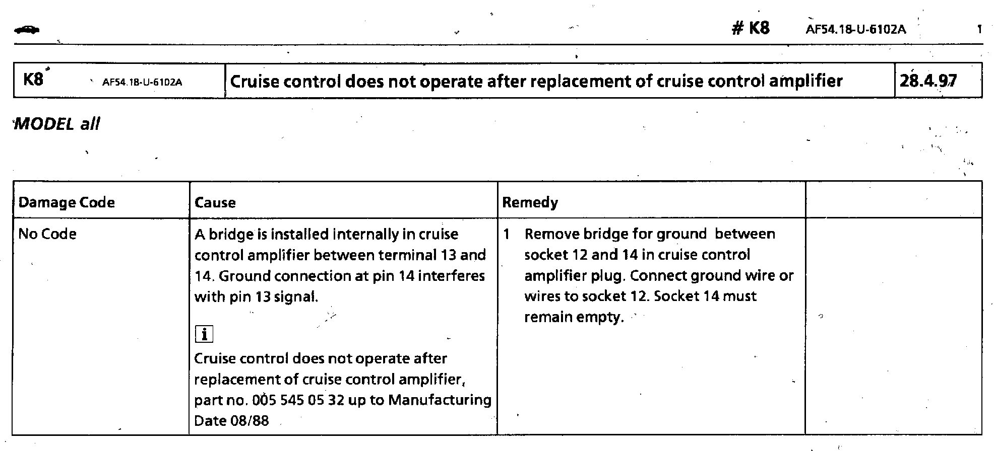 Cruise Control Inoperative After Amplifier Replacement