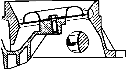 2. 2. With an appropriate drift carefully drive the dowel pin (arrow) down until the the air-flow sensor plate upper edge is flush with the upper edge of the cylindrical part of the air funnel. A higher position of up to 0.008 in. (0.2mm) is permissible.