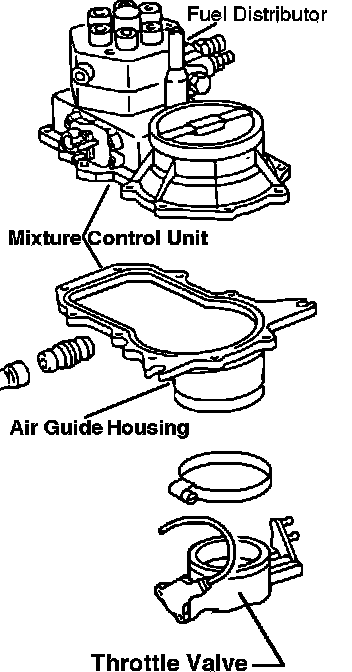 The mixture control unit consists of the air-flow sensor, CIS-E fuel distributor and the air guide housing.