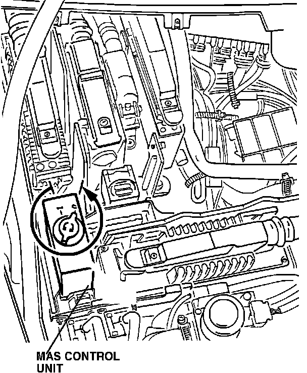 The MAS control unit is also equipped with on-board diagnostics. When the engine is running, any recognized faults will be stored in the control unit's memory. The stored faults can be extracted using an impulse counter at the on-board diagnostic connector. Furthermore, stored faults will not be erased if battery power is removed or the control unit is disconnected.