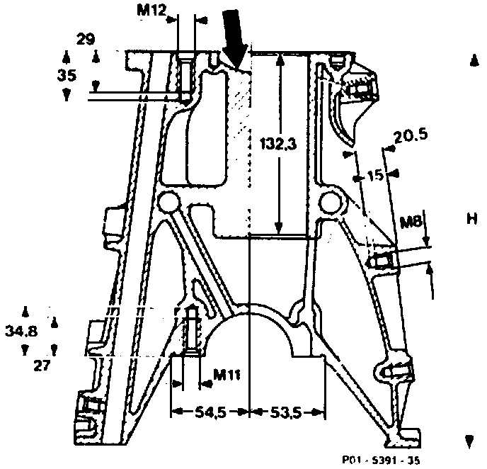 Height "H" of crankcase when new: