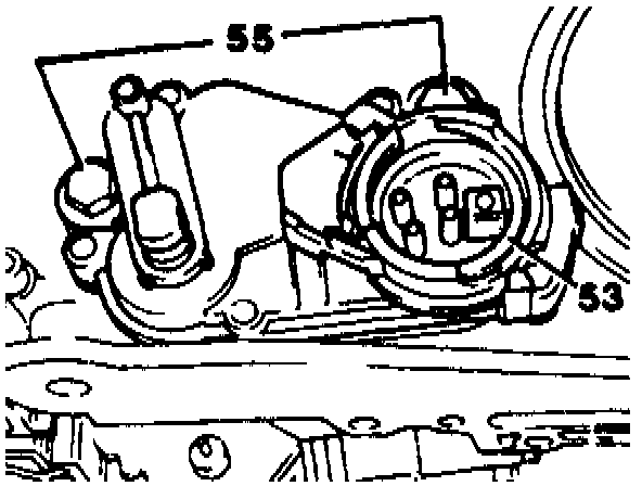 5 Unscrew both bolts (55) and remove starter lockout switch (53).