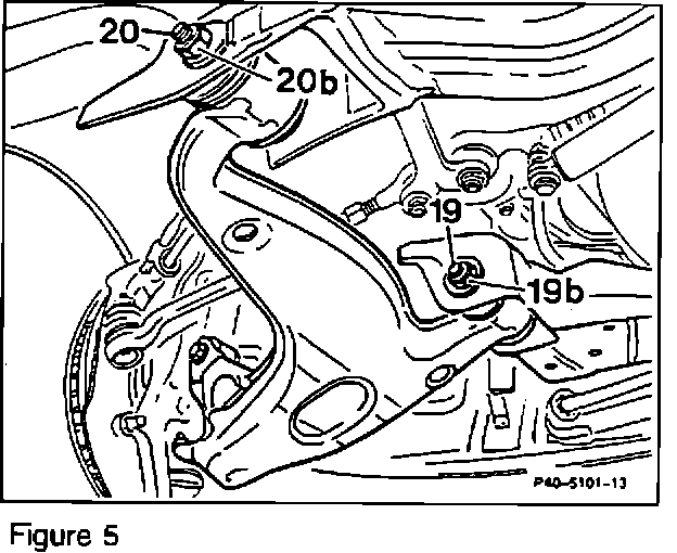 4. Remove eccentric bolts (19 and 20). Always use new nuts (19b and 20b) during reassembly.