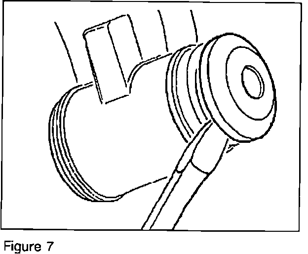 6. Drive the aluminum end washer from the rear rubber bushing with a suitable tool (Figure 7).