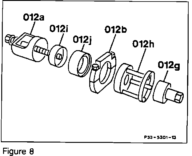 5. Pull the control arm free from the crossmember and hold it down with a spacer block made for this purpose (013, Figure 6).