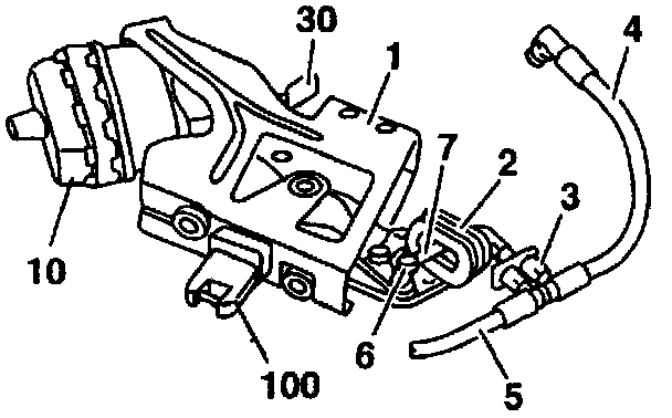 NOTE: AS of chassis end number 118121, pressure or vacuum for the lock striker actuator is applied in parallel with the retractable trunk lid grip actuator. If during diagnosis, the retractable trunk lid grip actuator and pneumatic line are determined to be leak-free, be certain to check the multiple connector (3) and lock striker actuator (2) for possible leakage as well.