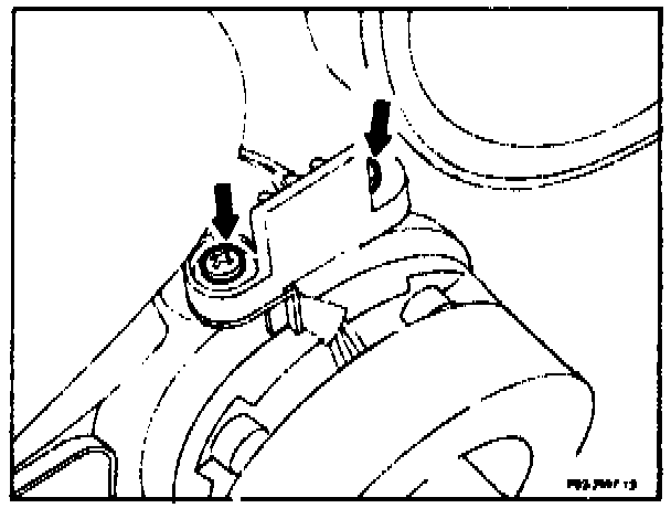 6. Remove solenoid coil (71). First open plug housing on refrigerant compressor. To open plug housing, unscrew both screws (arrows). Take out cable to solenoid coil. Disconnect negative lead of solenoid coil from refrigerant compressor.
