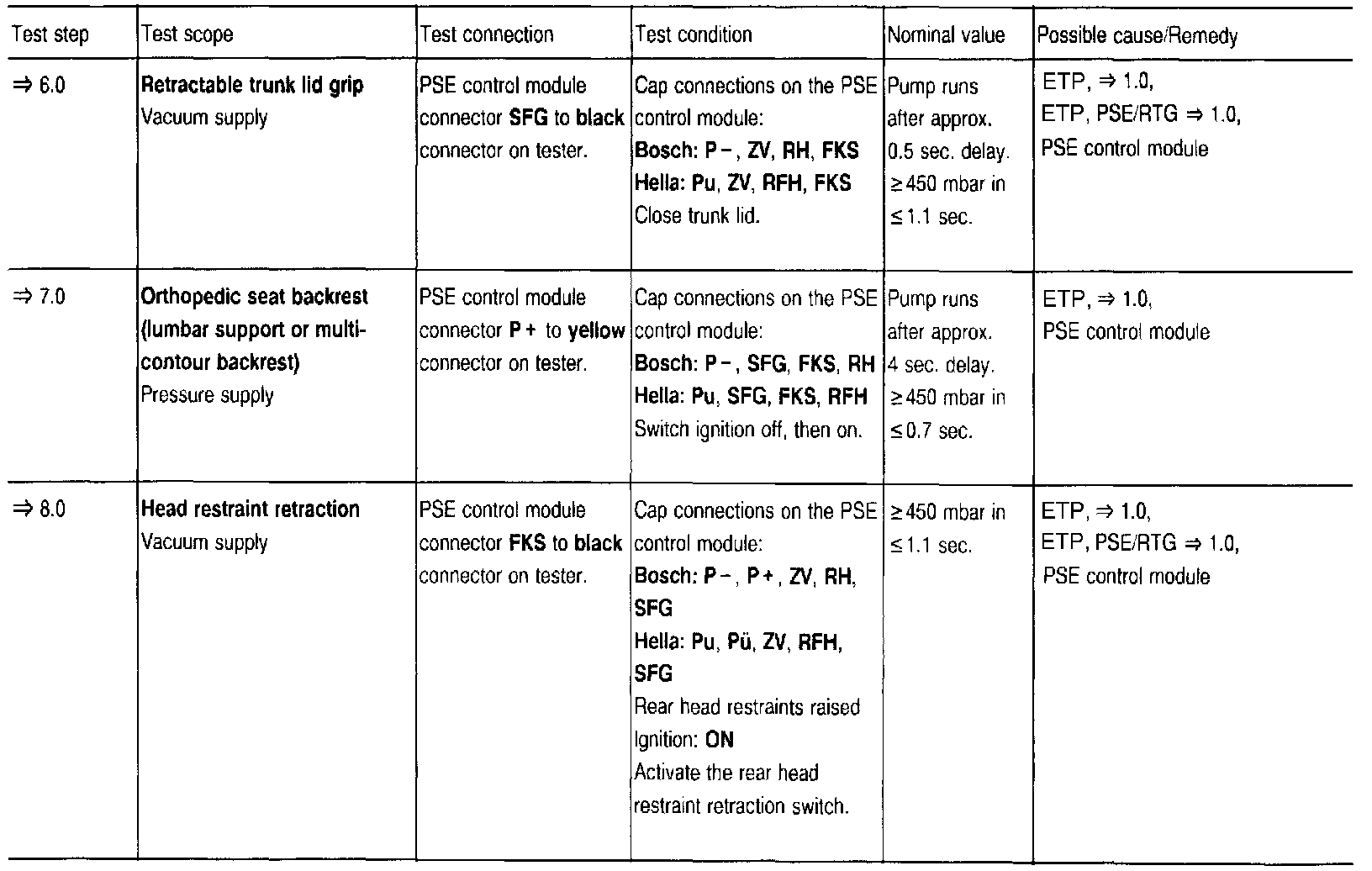 3. After completing the PSE control module test, do not operate any system which would require vacuum or pressure supply for approx. 10 minutes.